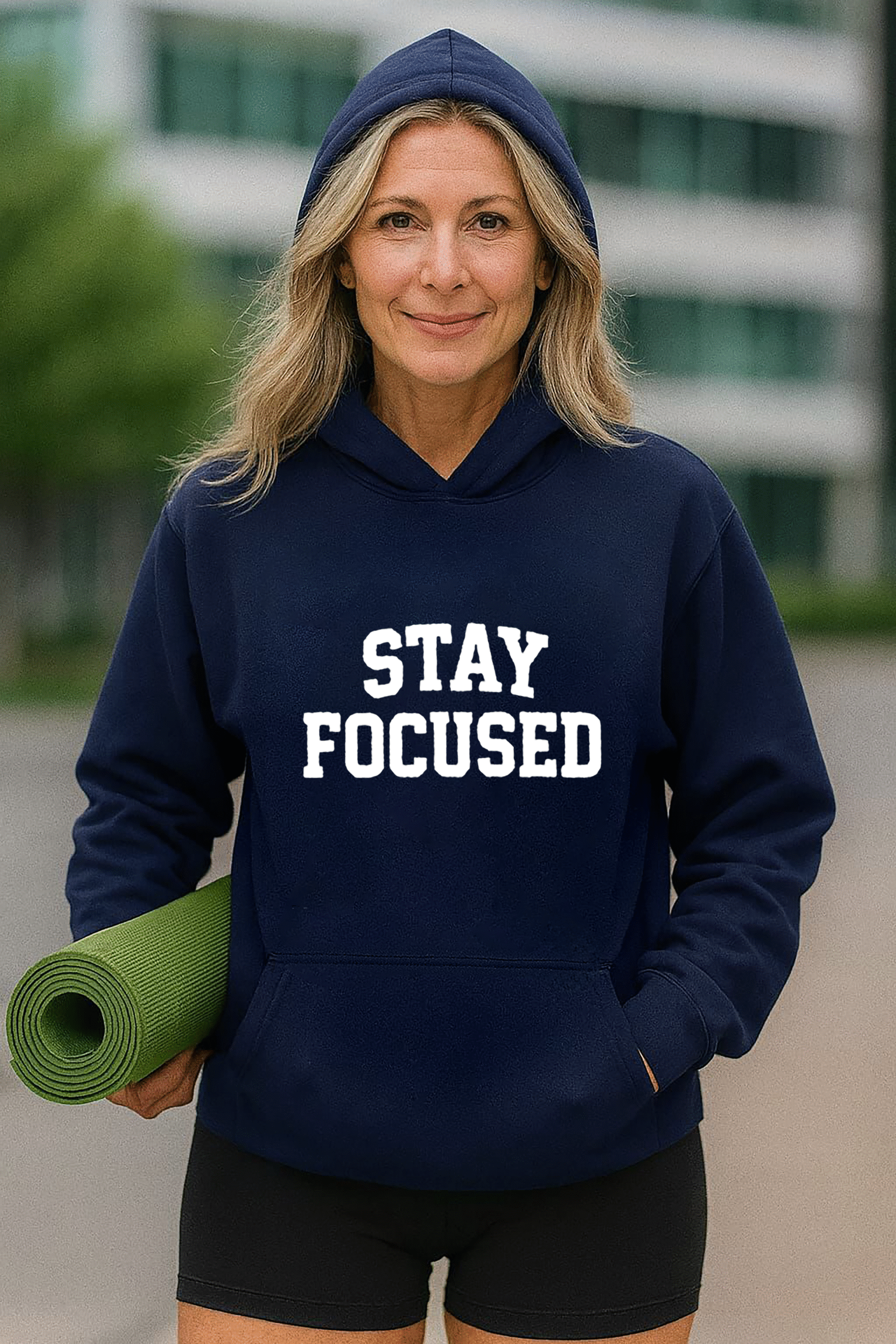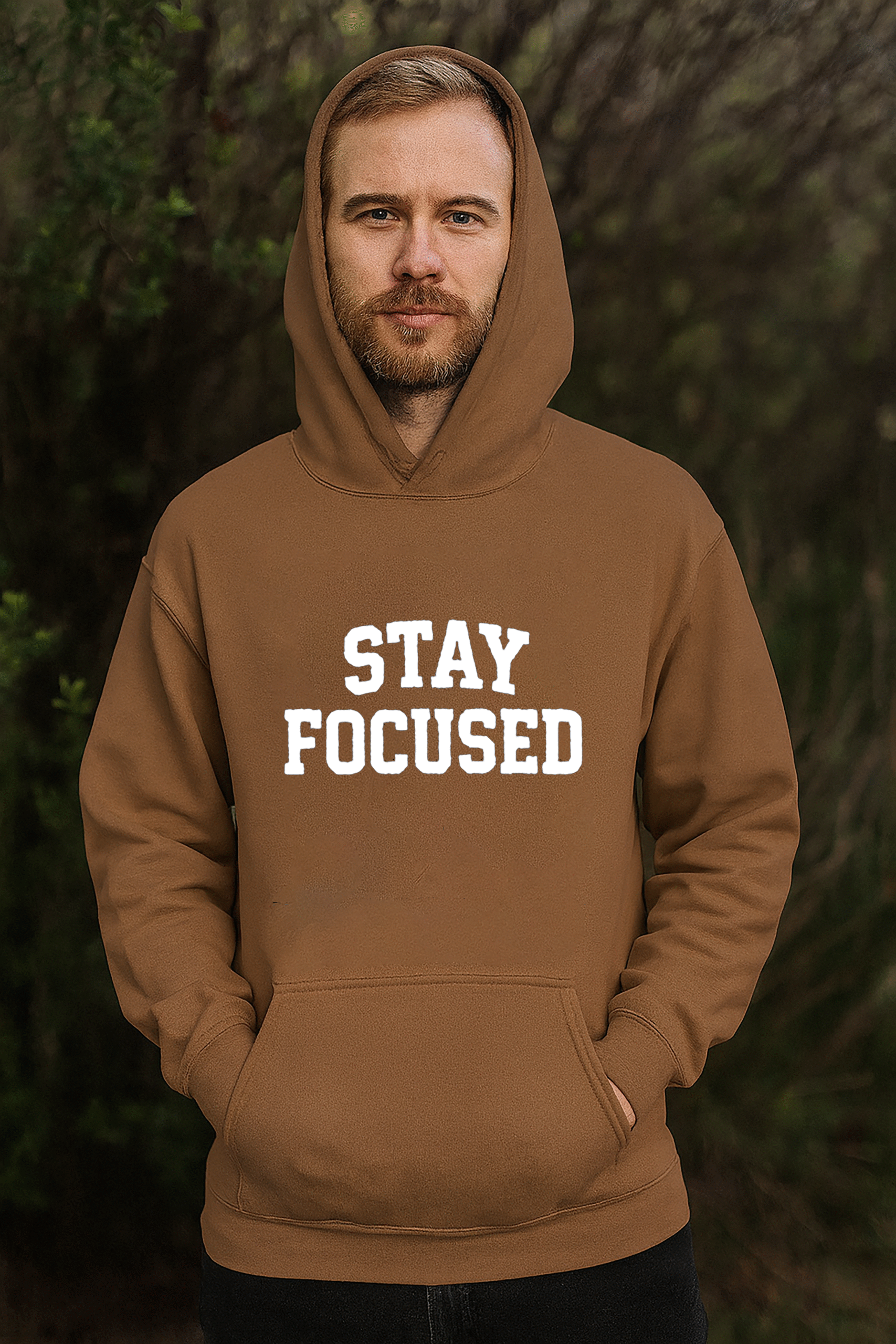Stay Focused chest embroidery for a refined, motivational detail