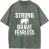 The oversized silhouette gives you that modern, relaxed edge, while the heavyweight fabric keeps its shape wear after wear. Featuring the empowering Brave and Fearless statement, this tee is more than clothing—it’s a mindset designed to push you forward.