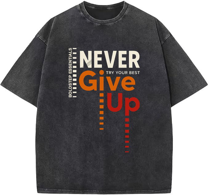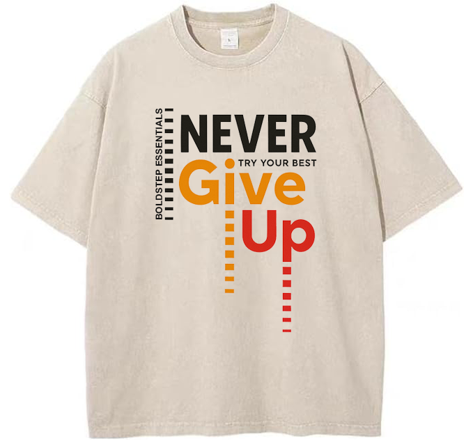 Redefine streetwear with the Boldstep Essentials Never Give Up Tee—a bold, oversized heavyweight shirt built for comfort, attitude, and everyday hustle. Designed with premium cotton fabric, this tee delivers that structured streetwear drape while staying soft and breathable, making it your go-to for both layering and stand-alone style.